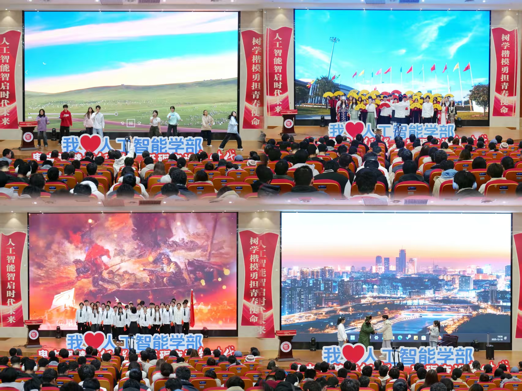 获奖代表知行杯“桥下空间焕新彩,都市活力链未来——城市角落里的‘灰姑娘’沪上桥下空间开发利用焕新计划”项目指导老师李骁、负责人陈浩进行主题分享,团队通过深入调研城市桥下空间现状,创新性提出系统化开发利用方案,鼓励同学们关注社会需求、主动服务社会。活动中,学部学生代表带来精彩表演,歌舞《第一天》、《come on加油》、《永恒的》活力四射、合唱《黄河大合唱》、《闪耀》气势恢宏。情景剧《当归》凭借真挚情感与深刻立意,讲述台湾同胞的家国情怀感人故事,深刻诠释政治安全的重要意义,诗朗诵《致未来》以深情的语言、磅礴的气势,展望人工智能时代的无限可能,抒发学子们立志投身科技强国建设、用青春书写华章的豪情壮志。