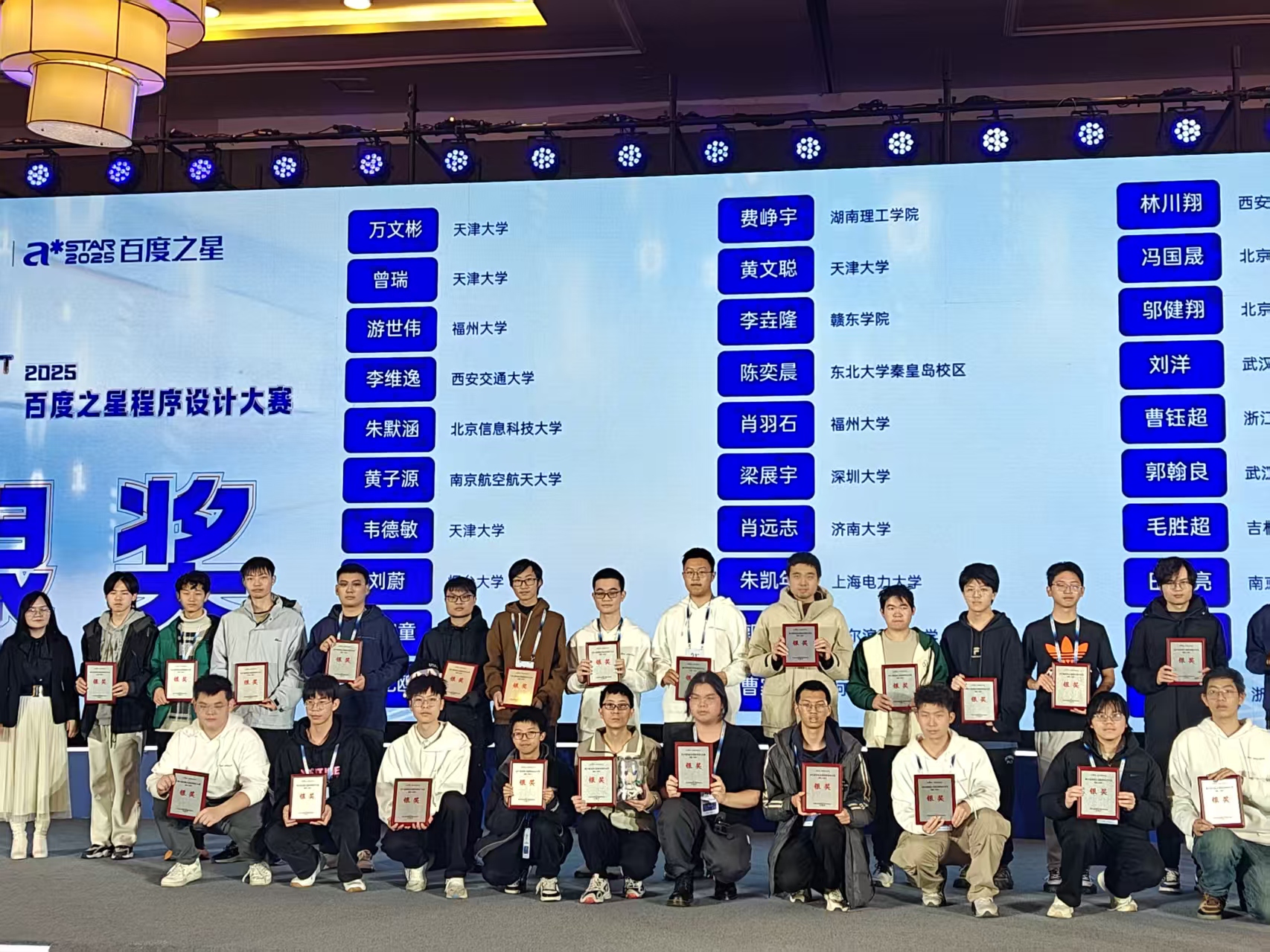 百度之星,又名Astar,是由全球最大的中文搜索引擎公司百度面向中国高校学生和编程爱好者所举办的高水平的程序设计大赛,自2005年创办以来,赛事已成功举办21届,累计吸引超过35万名学生参赛,覆盖全国上千所高校。该赛事被誉为中国互联网行业最具影响力的大学生程序设计赛事之一,享有程序员“黄埔军校”的行业美誉。本届大赛于今年6月至12月在全国范围内举行。经过省级选拔赛的激烈角逐,我校学子凭借扎实的算法功底与出色的临场发挥,共获得省级金牌1枚、银牌1枚、铜牌2枚,并有2名学生成功入围全国总决赛。最终,在总决赛中304永利集团ACM算法竞赛团队成员朱凯年同学斩获1枚银牌、王鼎皓同学获得1铜牌,总成绩为我校历年最好