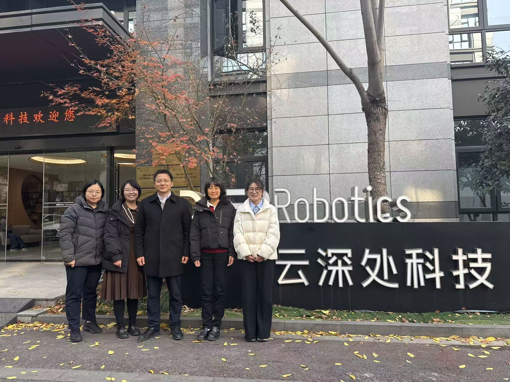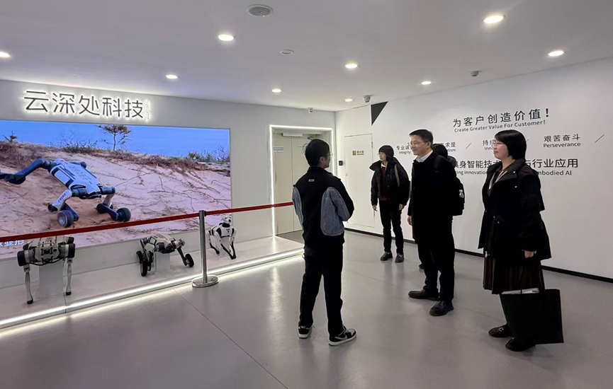 20251217日下午,304永利集团主任严怀成带队,与学部党委副书记齐永晓、副主任陈辉、副主任薛亮及青年教师管丹丹一同走访杭州云深处科技股份有限公司,围绕产学研融合与AI+能源电力创新发展路径展开深入交流。云深处科技教育事业部负责人柳浪陪同参观,双方在技术研发、人才培养与项目合作等方面达成多项共识。