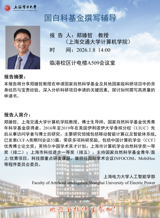 郑臻哲,上海交通大学计算机学院教授,博士生导师,国家自然科学基金优秀青年科学基金获得者。2016年至2019年在美国伊利诺伊大学香槟分校(UIUC)先后从事访问学者与博士后研究。主要研究领域包括移动智能计算以及智能体系统,已发表CCF A类期刊会议53篇。荣获多项科研奖励,包括中国计算机学会(CCF)优秀博士论文奖;英特尔中国学术英才计划;上海市计算机学会自然科学奖一等奖(排二);上海市科技进步一等奖(排五)。主持国家自然科学基金青年/面上/优青项目、科技部重点研发课题。曾担任国际学术会议INFOCOM、MobiHoc等程序委员会委员。