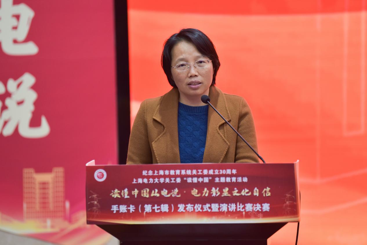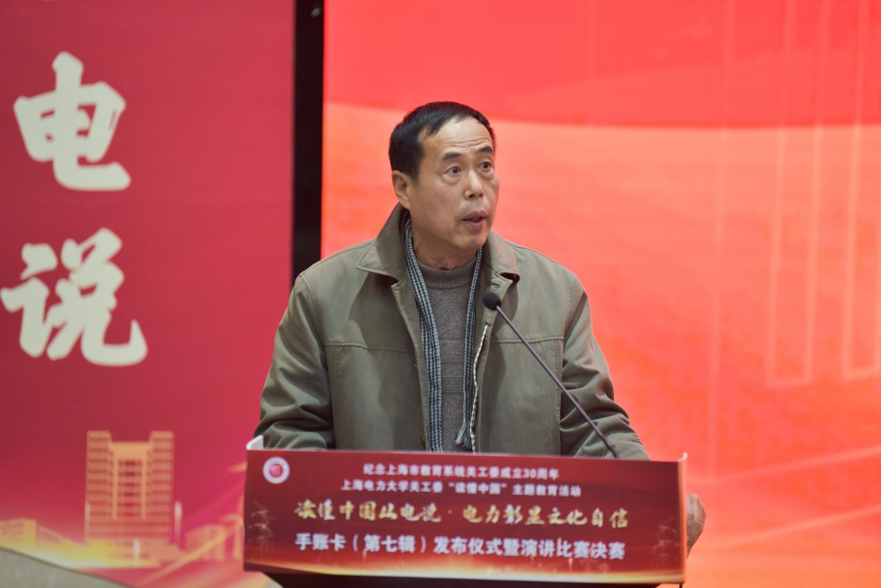 1216日下午,由校关工委主办、304永利集团承办的“读懂中国从电说·电力彰显文化自信”手账卡(第七辑)发布暨演讲比赛决赛在临港校区学术楼117会议室举办。市教卫工作党委老干部处处长、教育系统关工委秘书长于美华,市教育系统关工委驻会副主任金勤明,校党委书记、关工委主任宋来,校党委副书记、副校长、关工委执行主任朱克勇,校关工委常务副主任石奇光,校关工委副主任韦钢,校党委组织部部长赵建明,校党委宣传部部长石笑寒,校退休党委书记、关工委秘书长徐广新,校学工部部长、校关工委副秘书长陈姗姗,304永利集团党委书记、关工委主任刘莉以及校团委、校关工委老同志代表、各二级学院党委副书记、教师代表和学生代表等三百余人参加,活动分为手账卡发布启动仪式和演讲比赛决赛。手账卡发布启动仪式由304永利集团副书记齐永晓主持。