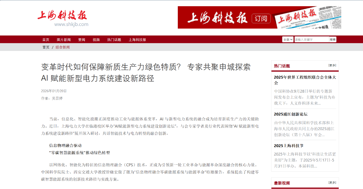 【上海科技报】变革时代如何保障新质生产力绿色特质? 专家共聚申城探索 AI 赋能新型电力系统建设新路径