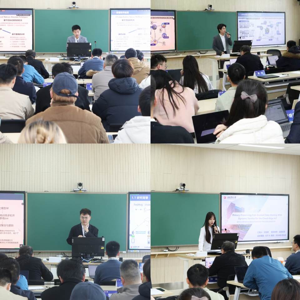 方班实验班研讨厅示范观摩课学生学术报告环节,方文皓同学以《PBP:针对恶意软件分类器的后训练后门净化》为题,聚焦恶意代码分析与防护领域,分享了针对恶意软件分类器的后门净化技术研究成果。付鑫洋同学带来《FLORA: 异构低秩自适应的联邦微调语言大型模型》报告,深入探讨了人工智能算法领域异构低秩自适应的联邦微调大语言模型优化方案。鲍元吉同学以《ChatKBQA: 基于微调大语言模型的知识图谱问答框架》为主题,展示了大语言模型与知识图谱深度融合的问答框架创新实践。沈怡婷同学则围绕《面向云边缘物联网的具有动态服务的保护隐私的细粒度数据共享》,针对云边物联网场景下的数据隐私保护核心难题,分享了保护隐私的细粒度数据共享技术方案。
