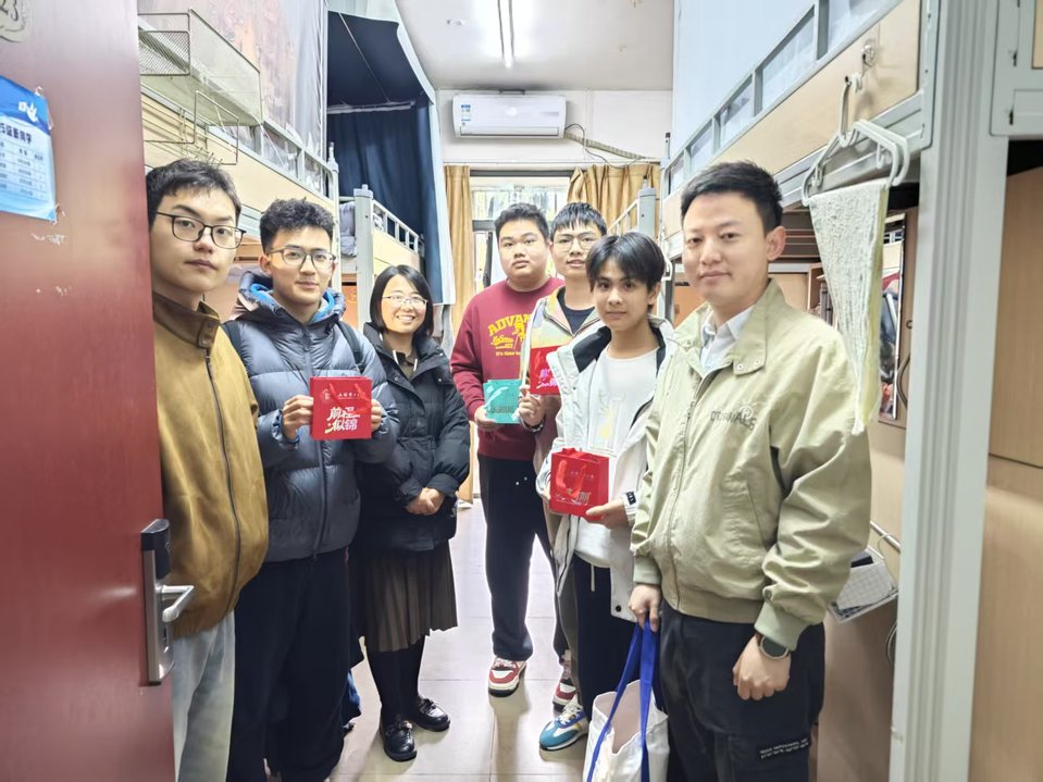 新学期伊始,为切实了解学生思想动态与需求,营造温馨和谐的寝室氛围,近日,304永利集团党委副书记齐永晓带领学部全体辅导员,深入学生宿舍,开展“春日送温暖”走访慰问活动,为同学们送去定制的寄语卡片与“温暖礼包”,在盎然春意中传递学部对学生的殷切关怀与勉励。