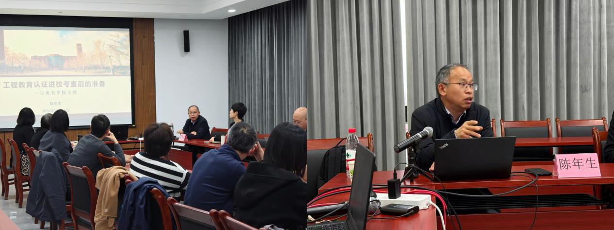 陈年生教授结合多年认证评审与指导经验,围绕专业认证全流程筹备工作展开系统讲解。他重点从进校考察核心流程、学校层面统筹保障、学部层面组织落实、专业层面材料筹备与迎检细节四大维度,拆解认证工作重难点,解读认证核心内涵、评审标准与材料规范。他的讲解贴合实际、直击要点,理清了认证工作整体逻辑,破解了教师筹备过程中的共性难题,为后续工作开展指明了方向。